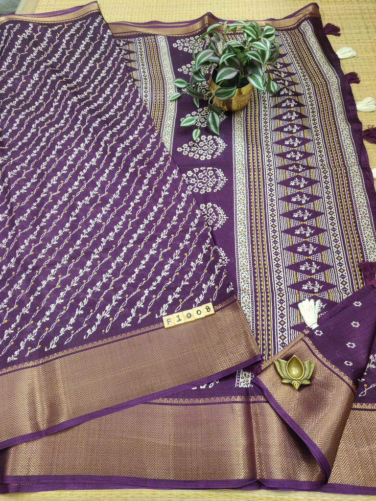 Printed Silk with trendy prints and with Jari Borders  with blouse.