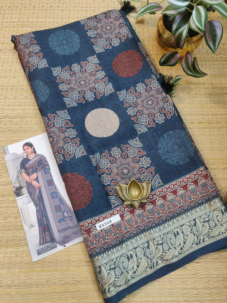 Printed Crepe Silk Sarees with ajrak prints With Blouse.