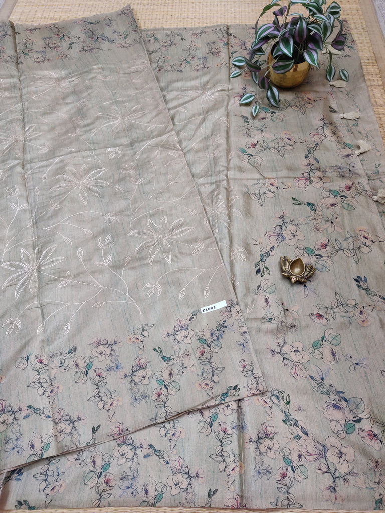 Fancy designer sarees with Jari embroidery all over the saree with printed Border with  Silk thread weavings with blouse.