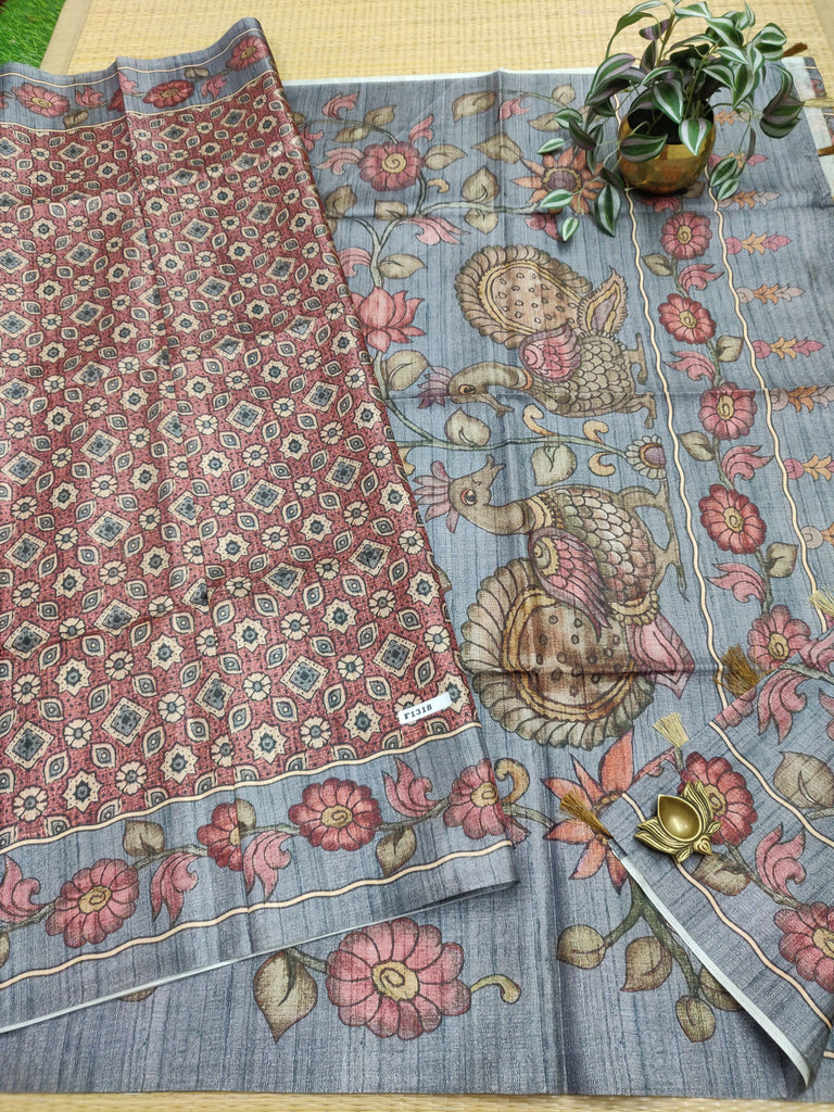 Printed Silk with trendy Kalamkari prints  with printed blouse and pallu.