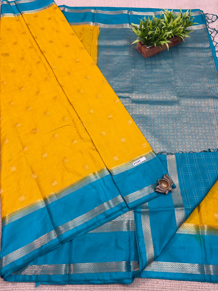 Semi Crepe Sarees with checks body with Butta & Jari Weavings with contrast border & blouse with rich pallu.