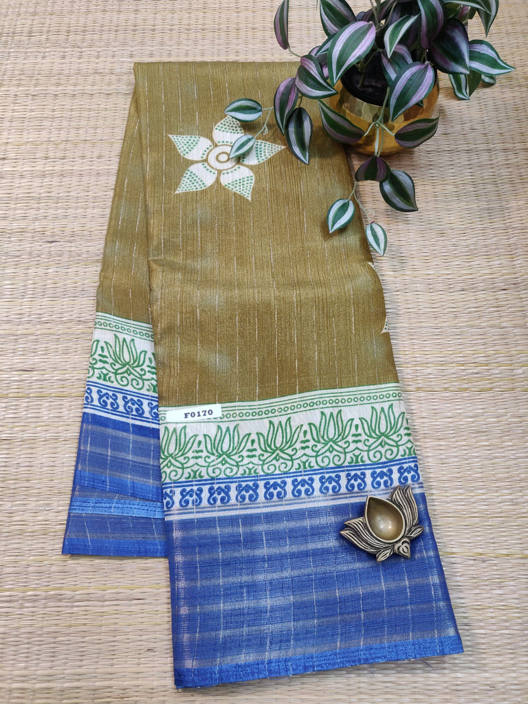 Printed Silk with trendy prints and with Jari Borders  with blouse.