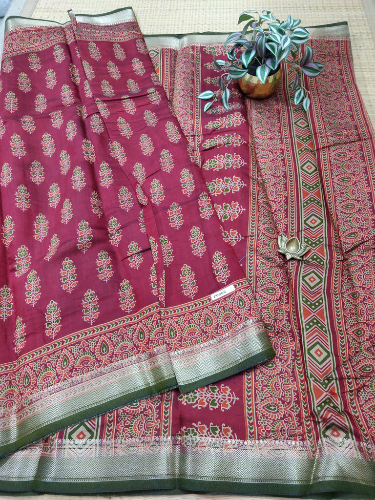 Soft mul silk cotton  sarees with ikkat prints with Jari weaving with antique Jari Borders