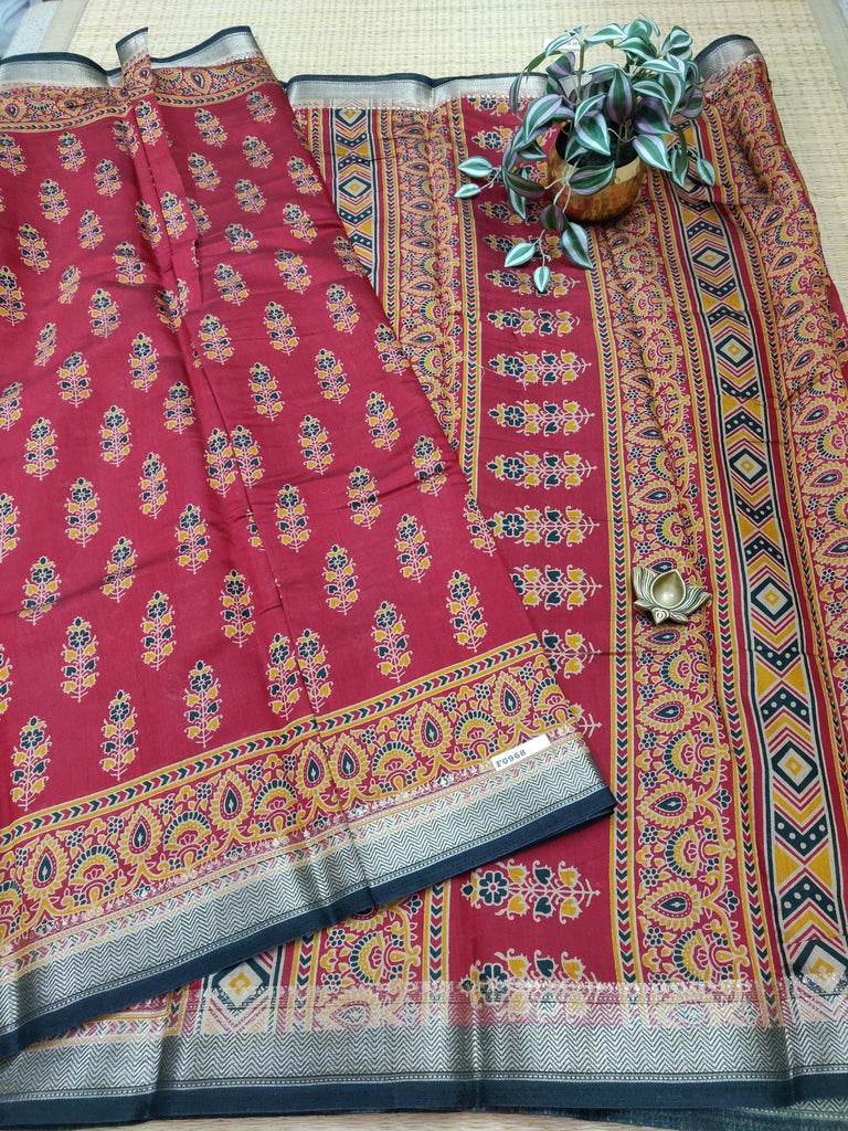 Soft mul silk cotton  sarees with ikkat prints with Jari weaving with antique Jari Borders