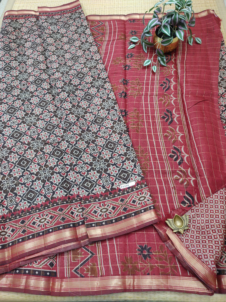 Soft mul silk cotton  sarees with ikkat prints with Jari weaving with antique Jari Borders