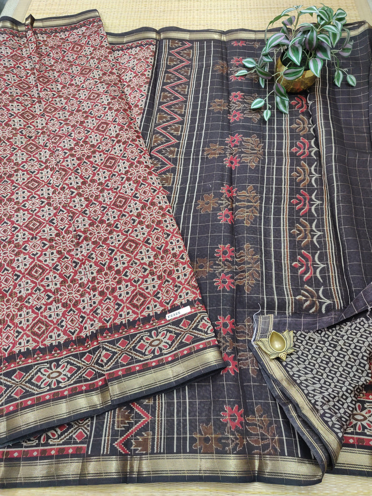 Soft mul silk cotton  sarees with ikkat prints with Jari weaving with antique Jari Borders