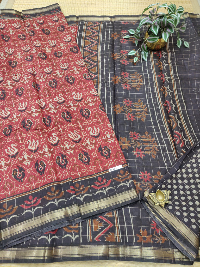 Soft mul silk cotton  sarees with ikkat prints with Jari weaving with antique Jari Borders