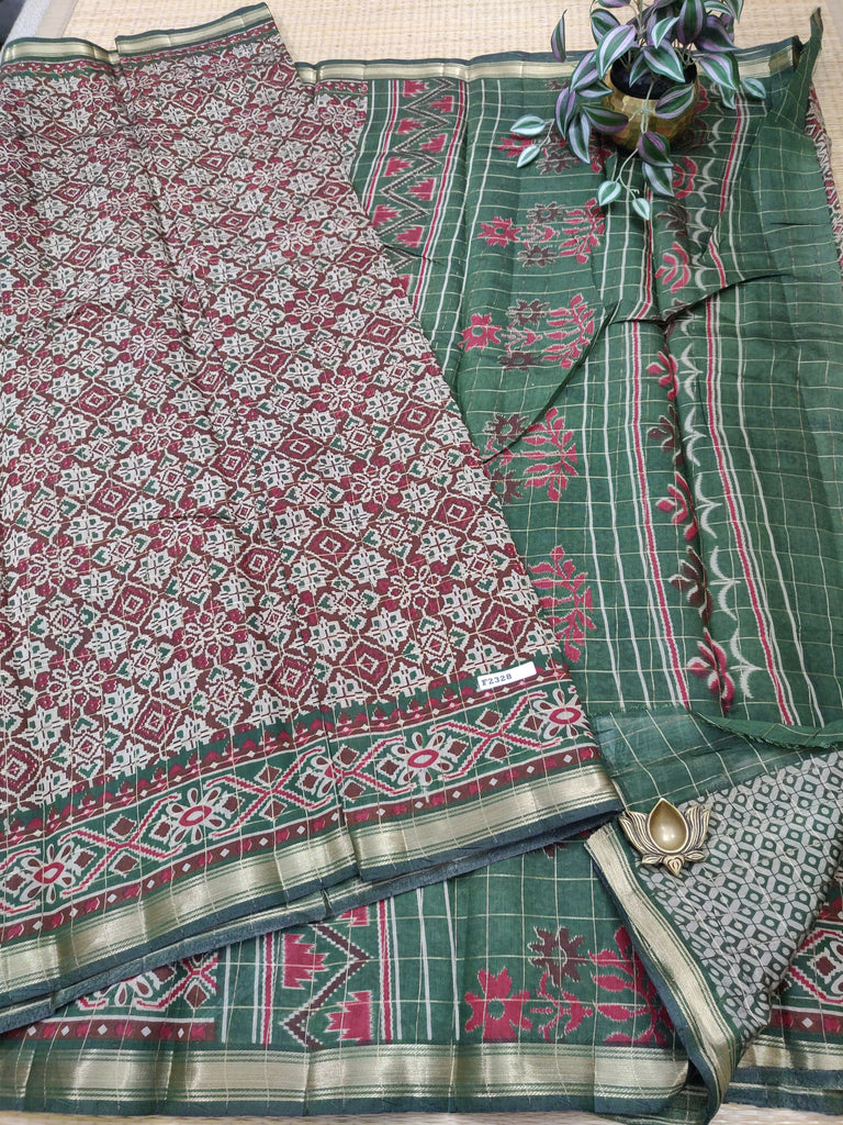 Soft mul silk cotton  sarees with ikkat prints with Jari weaving with antique Jari Borders