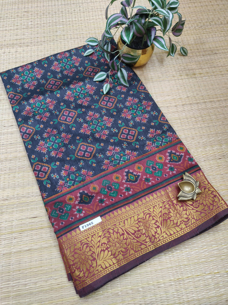 Printed Silk with trendy prints and with soft Jari Borders with printed blouse with tassels