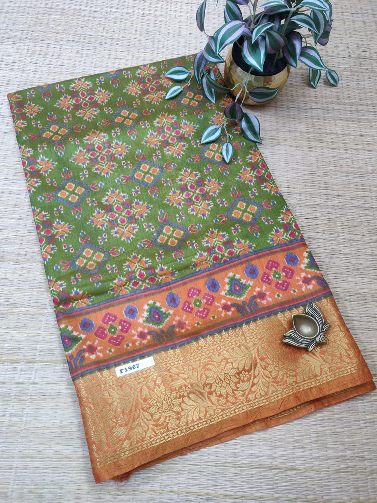 Printed Silk with trendy prints and with soft Jari Borders with printed blouse with tassels