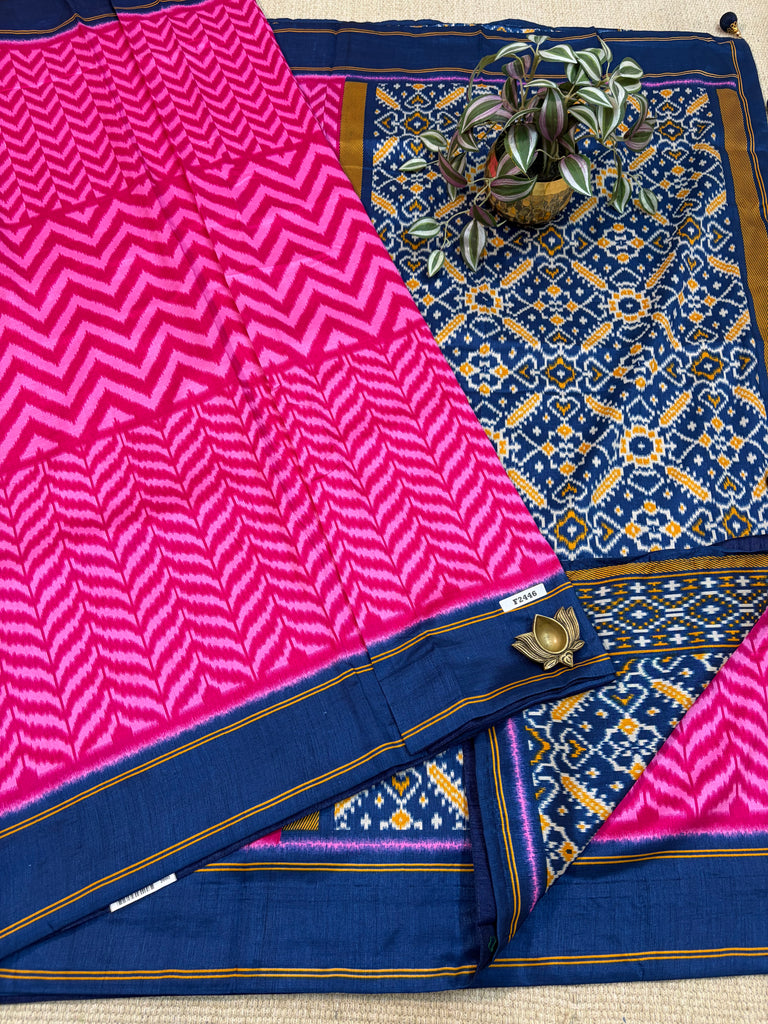 Printed Silk with trendy patolabprints and with Jari Borders  with blouse.