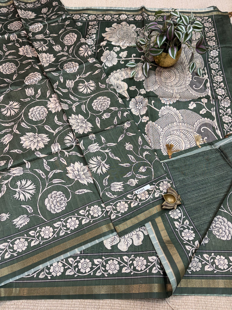 Printed Soft Rawsilk saree with kalamkari prints and Tissue Borders with Blouse